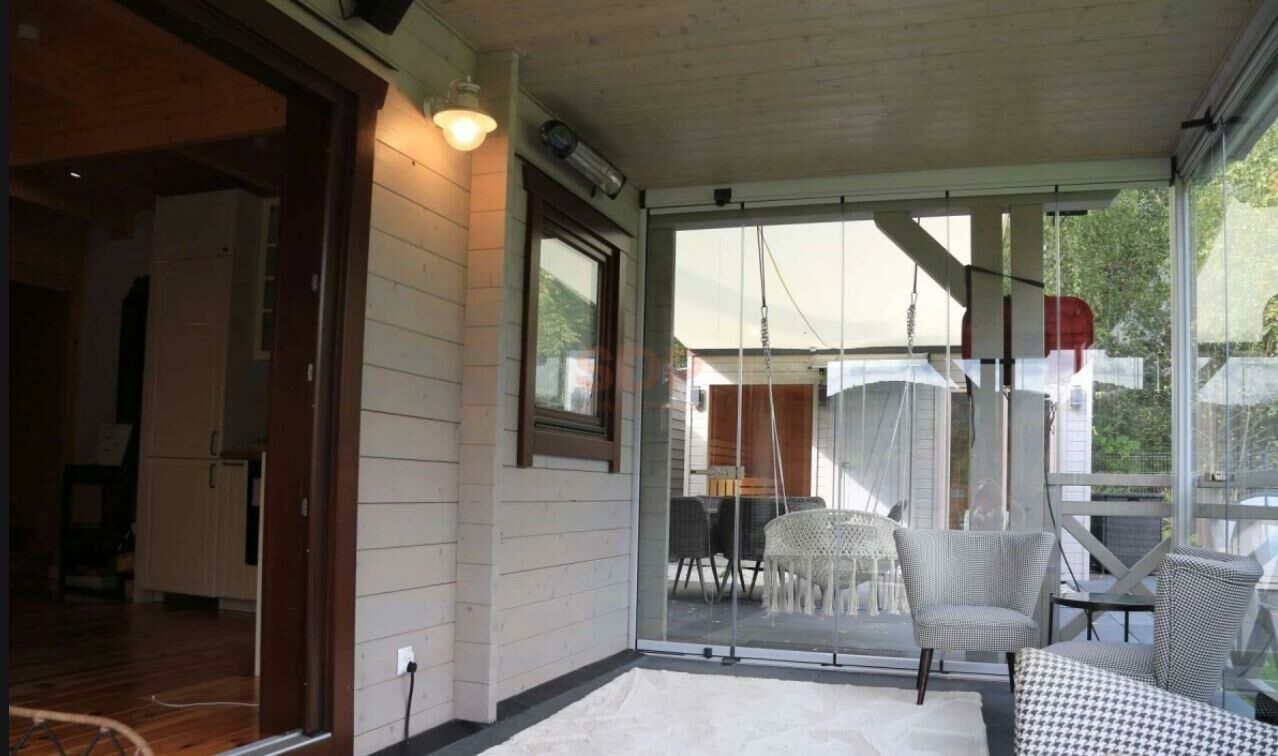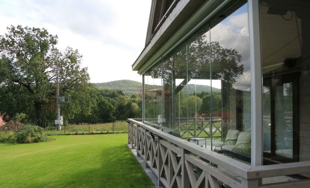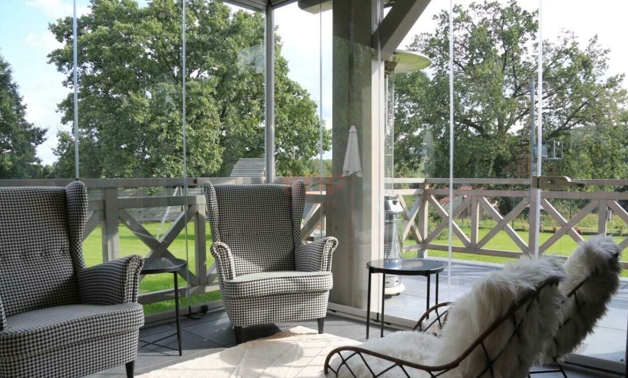 -salon połączony jest z przeszklonym tarasem, tworzącym niezależne pomieszczenie dla wypoczynku